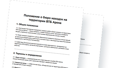 Обратитесь на стойку информации или в Бюро находок ВТБ Арены либо свяжитесь с администрацией объекта. Сообщите описание вещи, место и примерное время утраты. Либо отправьте запрос на нашу электронную почту: